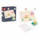 Hier ist eine schöne Art, Kindern ab 4 Jahren logisches Denken und Beobachtungsgabe zu vermitteln! Diese hübsche Kreuztabelle vermittelt den Kleineren den Begriff der räumlichen Orientierung und den entsprechenden Wortschatz: Zeilen, Spalten, Kästchen ... und all dies in Begleitung von schönen bunten Schnecken, die sie selbst zusammensetzen können! Auf dem Holzbrett werden 3 Schneckenhaus-Karten in Spalten und 3 Körper-Karten in Reihen angeordnet. Ziel des Spiels für unsere Kleinen: Informationen in Beziehung zueinander setzen und die Schnecke bilden, indem der richtige Körper mit dem richtigen Schneckenhaus kombiniert wird. Es gibt auch eine zweite Schwierigkeitsstufe: Sie müssen die zusammengesetzte Schnecke auf das Salatblatt in der richtigen Farbe stellen! 54 runde Karten, 3 quadratische Karten mit Gras, 3 Schneckenkörper, 12 Schneckenhäuser und 3 Salatblätter ermöglichen, mit unendlich vielen Kombinationen zu spielen! Ein praktischer Aufbewahrungsbeutel aus Baumwolle ist im Lieferumfang enthalten, damit nach dem Spiel nichts verloren geht. Eine Anleitung ermöglicht es Ihnen, dieses Spiel für Kinder der mittleren Altersgruppe optimal zu nutzen. Dieses Spiel ist Teil einer pädagogischen Produktreihe, die in Zusammenarbeit mit einer Lehrerin entwickelt wurde, um dem Lernprozess und dem Lernstoff der einzelnen Stufen bestmöglich zu folgen. Es ist aus Holz und Pappe, FSC®-zertifiziert
