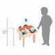 Wir gehen auf Zeitreise in die Welt der Dinosaurier, ein Zeitalter, das unsere Kleinen so lieben! Auf diesem schönen Tisch aus Holz in Rost- und Blautönen sind alle versammelt, um Kinder ab 12 Monaten in eine außergewöhnliche Welt zu entführen: ein Vulkan, der gerade ausbricht, Baby-Dinos, die aus dem Ei schlüpfen, und sogar fliegende Dino-Arten! Auf dem Programm dieses Tages in der Jurazeit stehen 8 verschiedene Aktivitäten, um die Neugier, die Motorik und die Konzentration unserer Babys zu fördern: ein Triceratops, der auf seiner Rennstrecke am Vulkan vorbeirollt, um das Glöckchen klingeln zu lassen, ein Abakus mit 10 Holzperlen begleitet von einem fliegenden Pteranodon, eine 3-teilige Palme zum Stapeln oder Holzspuren und Blätter zum Einsetzen. Dieses umfangreiche Aktivitätsspiel bietet zudem ein schönes visuelles Erlebnis mit dem rotierenden Ei, das andere kleine Eier auf dem Brett bewegt, Zahnräder, ein Ei, das Geräusche macht, wenn man es dreht, und ein rotierender Spiegel, der die Kinder zum Lachen bringt. Alle Details dieses Holzspielzeugs sind liebevoll gestaltet: Die verschiedenen Spielbereiche sind in schönen Farben gehalten, der Rauch des Vulkans ist aus weichem Filz und die Dinos mit ihren runden Augen schließt man sofort ins Herz! Dieses Spiel ist aus FSC®-zertifiziertem Holz. Die Höhe der Tischplatte beträgt 32 cm und sie ruht auf 4 sehr stabilen Beinen.