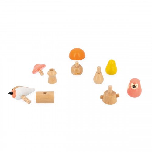 Das Auf- und Zuschrauben ist eine wichtige Phase in der Entwicklung der Feinmotorik der Kinder. Diese Handbewegungen ermöglichen es den Kleinen, sich auf das Schreiben vorzubereiten. Und wenn man diese Fähigkeit auf spielerische Weise mit schönen Vögeln und Pilzen trainieren kann, macht es gleich noch mehr Spaß! Auf in den Wald, wo Rotkehlchen, Eulen und Pilze friedlich miteinander leben! Dieses hübsche Set aus Massivholz und in sanften Farben besteht aus 5 Schraubelementen, die auf kleine Kinderhände abgestimmt sind. Mit diesem ergonomischen Schraubspiel bieten Sie Kindern ab 18 Monaten die Möglichkeit, ihre Beweglichkeit und die Flexibilität ihrer Handgelenke zu entwickeln. Spielzeug aus FSC®-zertifiziertem Holz (Holz aus nachhaltig bewirtschafteten Wäldern) Das Spielzeug wurde in Zusammenarbeit mit dem WWF® entwickelt. Janod unterstützt den Einsatz des WWF für den Schutz der Umwelt und die biologische Vielfalt durch ein Spielzeugsortiment aus nachhaltigeren Materialien. Mithilfe dieses Sortiments wollen wir die junge Generation inspirieren und motivieren, sich für die Tierwelt und die Natur zu engagieren.