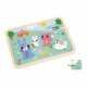 Besuchen Sie die Tiere auf dem Bauernhof! Mit diesem 24-teiligen Puzzle können Kinder ab 3 Jahren ihre Konzentrationsfähigkeit, Feinmotorik und Beobachtungsgabe schulen. Stück für Stück setzen sie eine ländliche Szenerie zusammen, in der sich die Tiere zur Brotzeit treffen! Der Esel teilt seine Karotten mit dem Kaninchen, die Maus isst Käse ... Und das Schaf da drüben? Das kommt immer zu spät! Die Vorlage für das Puzzle ist auf den Boden des Tabletts gedruckt, um den Kindern beim Zusammensetzen zu helfen. Dieses Holzpuzzle ist ideal, um die Namen der Bauernhoftiere und ihrer Lieblingsspeisen zu lernen, und lädt die Kleinen dazu ein, ihre Kombinationsgabe unter Beweis zu stellen. Wie soll das gehen? Indem es ein Spiel der Unterschiede einschließt! Es gibt fünf Unterschiede, die sich auf der Abbildung des Puzzles eingeschlichen haben: Viel Spaß dabei, sie mit der ganzen Familie zu finden! Clevererweise hat das Puzzle eine kleine Kerbe in einer Ecke, um das Herausnehmen der Teile zu erleichtern. Mit dem Tierpuzzle unterhält sich Ihr Kind und stimuliert sein Gehirn mit einer bewährten, ruhigen Aktivität! In seinem Format 30 x 22 cm besteht es aus Holz, das aus nachhaltig bewirtschafteten Wäldern stammt und FSC™-zertifiziert ist. Lecker!