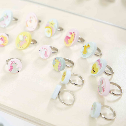Ringe zum Verschenken oder selbst tragen, ohne zu zählen! Dieses Einhorn-Ringset ist für Kinder ab 3 Jahren geeignet. Es besteht aus 20 Holzringen, die sich alle um das märchenhafte Thema Einhörner drehen! 10 Ringe sind rund, die anderen 10 oval - da ist für jeden Geschmack etwas dabei! Diese Ringschachtel ist ideal für Fans von Schmuck oder allem, was magisch ist, und gibt Kindern die Möglichkeit, ihre Persönlichkeit auszudrücken. Sie machen es wie die Großen und tragen ihren eigenen Schmuck, um ihren Stil und ihren Geschmack zu unterstreichen! Auf einer Party mit Freunden kann man allen Gästen einen Ring schenken und ihnen magische Kräfte zuschreiben, oder man kann einfach seinen besten Freunden ein süßes Geschenk machen. Die hübschen Farben und poetischen Illustrationen sind zum Anbeißen: Einhörner, Regenbögen, Sterne, Herzen ... Für einen charmanten Look, der das Selbstbewusstsein stärkt! Die hübsche, passende Schatulle ist ein echter Hingucker. Sie kann wiederverwendet werden, um die gesamte Ringkollektion aufzubewahren, damit Ihnen nie die Auswahl ausgeht. Dieses Set mit 20 Einhornringen besteht aus Holz, das aus nachhaltig bewirtschafteten Wäldern stammt und FSC™-zertifiziert ist. Bei Janod sind die Einhörner schlau und bedienen sich der Magie, um ihre Geheimnisse zu bewahren. Sie sind ungestüm und ikonisch und bewegen sich in einem poetischen Universum mit zeitlosen Farben. Finden Sie also Ihren Stil und teilen Sie die Magie!