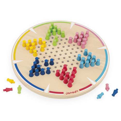 Ein Sprung hier, ein Sprung da … und schon hast du gewonnen! Dieses chinesische Dame-Spiel aus Holz, bestehend aus 60 bunten Spielsteinen, ist ideal, um Kinder ab 5 Jahren an Strategiespiele heranzuführen. Jeder Spieler wählt seine Farbe und startet auf einem der 10 Spielsteine. Ziel des Spiels? Das Brett zu überqueren, indem man Feld für Feld zieht oder über andere Spielsteine springt, um die gegenüberliegende Seite zu erreichen! Aber Vorsicht: Die Punktzahl hängt von der Spieleranzahl ab! Bei 2 Spielern kontrolliert jeder drei Punkte für mehr Spannung und Wendungen. Bei 3 Spielern sind es zwei Punkte pro Spieler. Bei 4 oder 5 Spielern hat jeder Spieler einen Punkt und blockiert die übrigen. Und bei 6 Spielern? Ganz einfach: Jeder hat einen Punkt! Dieses traditionelle Strategiespiel fördert Logik und Konzentration. Ein cleveres Spiel, das viele spannende Runden und gemeinsame Spielfreude verspricht! Das Spiel ist aus FSC™-zertifiziertem Holz gefertigt.