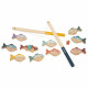 Sieht so aus, als ob sie angebissen haben! Dieses Angelspiel aus Holz wird Kleinkinder ab 2 Jahren begeistern! Mit zwei Holzruten, die mit Magneten ausgestattet sind, versuchen die Kinder, die hübschen, bunten Fische zu fangen. Es ist ein Wettstreit, wer die meisten Fische fängt! Jeder Fisch hat eine Metallscheibe, die das Hantieren erleichtert. Man kann mit einem Freund für eine lustige Herausforderung spielen oder alleine üben, ein echter Angelprofi zu werden! Dieses Geschicklichkeitsspiel ist ideal, um die Hand-Augen-Koordination, die Konzentration und die Feinmotorik zu entwickeln. Es ist aus FSC™-zertifiziertem Holz hergestellt. Auf die Plätze, fertig, los… Angeln!