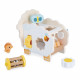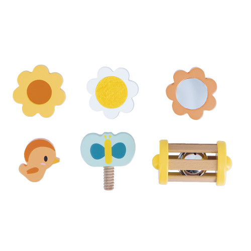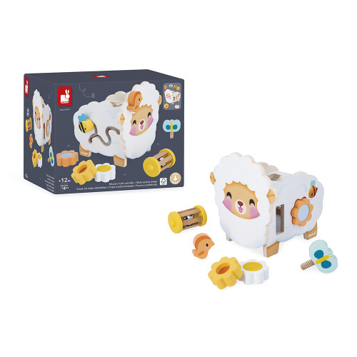 Ist dieses rustikale Holzschaf nicht zuckersüß? Blumen, eine Biene, ein Schmetterling … die ganze Natur ist vertreten! Dieses vielseitige Schaf bietet zahlreiche Spielmöglichkeiten, die Kinder ab 12 Monaten begeistern werden. Vorne, nahe dem Kopf, befindet sich ein kleiner Magnetvogel, den die Kleinen nach Belieben abnehmen und wieder anbringen können. Auf der einen Seite gibt es ein Formensortierfeld, in das Babys drei Blumen einordnen können. Hier müssen die Kleinen ein bisschen nachdenken, um die Formen richtig zu ordnen. Und das Beste? Jede Blume hat eine einzigartige Oberfläche zum Entdecken: einen Spiegel, eine Kratzfläche und eine transparente Plexiglasscheibe, durch die man die Welt in Orange sehen kann! Auf der gegenüberliegenden Seite befindet sich ein kleines Labyrinth mit einer niedlichen Holzbiene. Die Herausforderung für das Baby? Sie durch den Pfad zu führen! Ein Schmetterling kann auf den Rücken des Schafs geschraubt werden, sodass die Kleinen erste Erfahrungen mit Drehungen sammeln können. Gleich daneben ist ein kleines Fach für eine Rassel: Das Baby kann sie greifen, schütteln und ihrem sanften Klingeln lauschen. Ideal, um das Gehör schon in jungen Jahren zu fördern. Clever gestaltet, lassen sich die 6 Zubehörteile dieses Spielzeugs auch im Inneren verstauen! Dieses wunderschöne, entwicklungsfördernde Spielzeug ist aus FSC™-zertifiziertem Holz gefertigt.