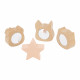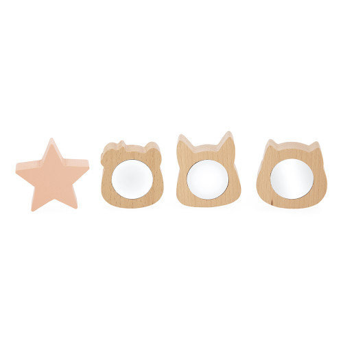 Lass uns mit dieser niedlichen Taschentuchbox auf Entdeckungsreise gehen! Schon Babys ab einem Jahr können mit dieser Box, die Formen und Texturen bietet, spielerisch ihre Sinne wecken und Feinmotorik, Tastsinn und Sehvermögen fördern. Mit diesem Lernspielzeug kann dein Baby die vier Holzteile beobachten, damit spielen und sie in die passenden Formen legen. Es gibt einen Stern und drei süße Tierköpfe: einen Panda, eine Katze und einen Fuchs. Der Clou? Hinter jedem Kopf verbirgt sich ein Zerrspiegel, der die Kleinen zum Kichern bringt! Dein Baby greift mit der Hand in die Box … und schon kommt ein weiches Taschentuch zum Vorschein. Und dann noch eins, das ganz rau ist! Jedes Material lädt zum Fühlen, Ziehen und Knüllen ein. Dein Baby findet vier Taschentücher mit unterschiedlichen Texturen – genug, um seine Neugier und seinen Entdeckerdrang zu stillen! Die kleinen Holztüren an den Seiten lassen sich ganz leicht öffnen … und schon kann dein Baby die Teile, die es in die Box gelegt hat, ganz einfach wieder herausholen. Eine einfache Geste, die die Spielzeit verlängert und die Selbstständigkeit fördert! Dieses Spielzeug mit seinen sanften Farben und liebevollen Illustrationen schafft eine beruhigende und fröhliche Welt für Babys. Die sensorische Taschentuchbox aus unserer Pure Kollektion holzbasierter Entwicklungsspielzeuge ist aus FSC™-zertifiziertem Holz gefertigt.