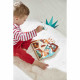 Ein Puzzle, das Geräusche macht! Dieses Holzpuzzle mit Dinosaurier-Motiv ist ideal für Kinder ab 18 Monaten. Es besteht aus 5 Steckteilen und ist perfekt für neugierige kleine Hände. Die Teile mit abgerundeten Kanten und Holzstiften lassen sich leicht greifen und bewegen. Dieses Lernspielzeug fördert Feinmotorik, Logik und Hörvermögen schon im frühen Kindesalter! Jedes Teil stellt einen Dinosaurier dar: Tyrannosaurus, Diplodocus, Triceratops, Pteranodon und Stegosaurus. Sobald das Teil richtig platziert ist, drückt man es einfach, um das Brüllen des entsprechenden Dinosauriers zu hören. Ein unterhaltsames Erlebnis, das Kinder in eine faszinierende Welt voller prähistorischer Kreaturen und eines ausbrechenden Vulkans entführt! Mit seinen praktischen Maßen von 24 x 25 cm ist dieses Klangpuzzle aus FSC™-zertifiziertem Holz gefertigt. Bereit für ein Klangabenteuer in der Zeit der Dinosaurier?