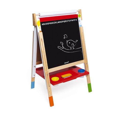 Zum Schreiben oder Zeichnen ist die Holztafel ein Muss in allen Kinderzimmern! Ab einem Alter von 3 Jahren haben unsere Kinder immer mehr Lust , zu schreiben und zu zeichnen, und werden dabei jeden Tag besser. Um diese ersten Versuche zu erleichtern und um Schule zu spielen, gibt es nichts Besseres als eine doppelseitige Tafel, auf der sich Kleinkinder mit den Markern für das Whiteboards sowie mit der Kreide für die Schreibtafel vertraut machen können! Die weiße Seite ist magnetisch, damit man beispielsweise auch mit Buchstabenmagneten spielen kann (Splash Buchstaben passend zur Tafel J09612). Die Beine dieser Tafel sind von 91 bis 126 cm verstellbar, damit sie ihre Tafel länger benutzen können! Praktisch: Die Tafel kann zusammengeklappt werden und lässt sich mühelos verstauen. Dieses schöne Spielzeug umfasst: 6 bunte, runde Magnete, 10 Kreiden, 1 schwarzen trocken abwischbaren Filzmarker, 1 Rolle Papier, 1 Tafelwischer und 3 Farbbehälter aus Plastik. Ersatz-Papierrollen für die Tafel sind auf der Website verfügbar: J00012.