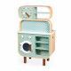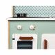 Heute gibt es ein Familienessen, zubereitet in dieser schönen und trendigen Reverso Holzküche, die beidseitig nutzbar ist! Zarte Farben, ein einzigartiger und moderner Stil mit abgerundeten Formen, zahlreiche Spielmöglichkeiten dank der Aktivitäten auf beiden Seiten der Küche kombiniert mit tollen Funktionen ... es ist der Traum aller Kochlehrlinge und Meisterköche! Das doppelseitige Design ist ein weiterer Bonus! Kindern ab 3 Jahren bieten sich eine Vielzahl von Spielmöglichkeiten, ob allein oder mit Freunden. Hier können sie sich beim Spielen tolle Geschichten ausdenken - sowohl auf der Küchenseite als auch der Waschküchenseite! Diese Cooker Reverso Küche ist komplett ausgestattet: eine Spüle aus Metall und eine Induktionskochplatte mit Geräusch- und Lichteffekten. Einfach einmal die roten Tasten drücken, um die Kochplatten einzuschalten, und ein zweites Mal drücken, um das Geräusch von kochendem Wasser zu hören. Geräusche und Licht schalten sich nach 30 Sekunden automatisch aus oder wenn die Tasten ein drittes Mal gedrückt werden. Wie eine echte Küche ist sie zudem mit zwei Drehknöpfe mit Geräuscheffekten, einem Backofen, einer Mikrowelle, einem Schrank mit magnetischen Türen ausgestattet. Darüber hinaus enthält diese schöne Küche 7 Utensilien aus Metall: 1 Pfanne, 1 Topf, 1 Sieb, 1 Löffel, 1 Pfannenwender, 1 Schaumlöffel, 1 Nudellöffel und 1 Topflappen. Auf der Rückseite erwartet die Kleinen eine voll ausgestattete Waschküche mit Waschmaschine, Aufbewahrungsregalen, einer Uhr mit sich drehenden Zeigern und zwei Programmtasten mit Geräuscheffekten! Die zauberhafte Optik, die abgerundete Ecken mit naturbelassenem Holz, wassergrünen und weißen Elementen perfekt kombiniert, erhält durch geometrische Vintage-Muster den letzten Schliff. Sowohl die Kleinen als auch die Eltern werden begeistert sein! Dieses schöne Rollenspielzeug mit seinem originellen Konzept bietet Ihren Kindern alles, was sie brauchen, um sich lange und schöne Geschichten auszudenken! Höhe der Arbeitsplatte: 50 cm.