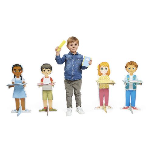 Shall we build robots? To the workbench we go! Children aged 3 years and up will love tinkering and experimenting on their wooden workbench, complete with numerous accessories. This children’s height-adjustable (work surface can be installed 33 or 50 cm from the floor) workbench is ideal for developing imagination, creativity and fine motor skills. It's also a great pretend play toy for those who want to tinker like adults! In total, more than 50 DIY accessories are included: 3 magnetic wooden tools (spanner, hammer, screwdriver), 7 gears, 9 wooden boards, 1 set of plastic hardware (8 screws, 8 nuts, 12 nails), 2 sticks of chalks and 1 brush. Draw or write in chalk on the body of our robot friend! For added realism, this construction game boasts a vice on the side and storage space at the feet: practical for storing all the pieces! The magnetic side of the workbench will make people happy as the tools are kept in place within easy reach. Another advantage to this magnetic workbench are the robot arms that your budding DIYer can assemble and articulate to bring the robot to life: a funny assistant or ambitious creation? What role will this robot play in your child's stories? The small robot on wheels, provided with the workbench, will most definitely become your little one’s best creation. It comprises 7 pieces and comes with a model card; an additional construction toy with a very funny face! But that's not all: for a more realistic grip, the screws are notched just like real ones! With its pretty colours and natural wood, this pretend play DIY toy will delight the whole family and provides a fun surface for children that is conducive to inventiveness. Height-adjustable feet, a whole host of accessories, magnetic tools and robots: introducing the dream workbench for curious little ones AND budding DIY enthusiasts! This large workbench is made from FSC™-certified wood. It is part of our collection of DIY pretend play toys: Brico'Kids.