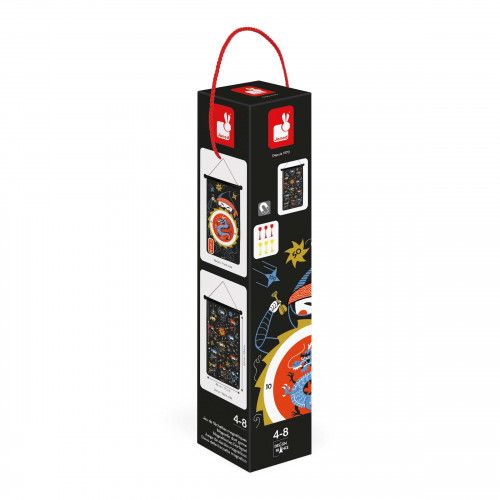 Flaunt your ninja-like precision by challenging your friends or family to a game of darts! Nothing could be simpler with it comes to this hanging magnetic dartboard for children aged 4 years and up! Learn to aim in a safe environment, thanks to these magnetic darts which adhere as if by magic to this party game’s target! Their flat tip allow for risk-free play, even with little ones. This ninja version boasts bright colours and characters who have as much energy as your children. Children can have fun on both sides of the game and move from one scene to the other, according to their mood. Opponents will have 3 darts each (3 red and 3 yellow) as they try to hit the higher numbered areas. The player with the most points wins! Use the string to hang the target on the wall. This game of skill is ideal for developing children's dexterity and concentration. It will be perfect for family fun or entertaining little ones at a birthday party. Once the game has been won (or lost), the target and darts are stored in their closed box to ensure that nothing goes astray.
