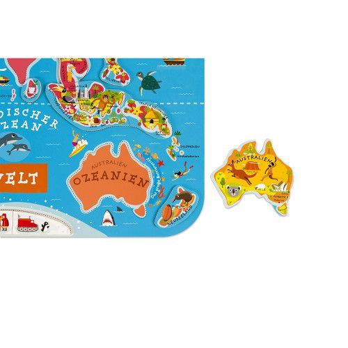 Around the world in 92 magnets ! Each magnet represents a country or region of the world, with its name, capital and an illustration characteristic of that part of the world. The big magnetic board shows the world with its continents and oceans : the colour used for each region helps you find its place. Have fun putting each country in its place and you will have a wonderful map of the world which you can hang on the wall. A fun and educational way of discovering the planet. Around the world in 92 magnets!