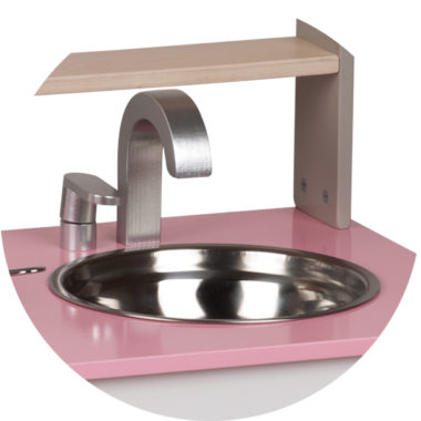 At home, everyone has their own kitchen! And so that children can enjoy imitating grown-ups preparing good food, we like their toy kitchen to be as realistic as possible! This is the case with this beautiful wooden Macaroon Cooker, with its soft colours and pretty patterns! Perfectly suited to children aged 3 and over, this beautiful imitation toy includes lots of features and accessories: a wooden hook to hang the 2 metal spoons, 1 metal frying pan and 2 cardboard food tins (peas and sugar) to be placed on the small shelves. Thanks to this complete cooker, children will also be able to have fun with the oven and its 2 rotating knobs with sound effects, the 2 induction plates, the cupboard with magnetic doors, the stainless steel sink and the clock to watch the chocolate cake cooking! So, are you ready to enjoy your child's culinary creations? Worktop height: 50 cm (19.7"). This product is made of FSC® -certified and other controlled material.