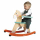 Let's go, saddle up! It's time for a colorful ride with this charming wooden rocking horse! With its playful look, it adds a cheerful touch to a bedroom or living room and appeals to both children and adults. From the age of one, children discover the joy of rocking, developing their balance, coordination, and motor skills, all while inventing stories on horseback. They can talk to it, feed it, cuddle it… just like a real horse! Designed to support toddlers in their development, this rocking horse is equipped with a removable safety bar, ideal for growing with the child once they can balance well. It also features an anti-tip system under the feet, with rubber elements at the front and back that limit sudden movements and ensure a smooth and controlled rocking motion. The best part? The seat, at a fixed height, has a cushion for added comfort! The child discovers the joy of rocking, develops their balance, coordination, and sense of movement… all while inventing stories! Giving this rocking horse is choosing a timeless toy, both fun and educational, that stimulates cause and effect, speed and movement awareness, and encourages exploration. Settle in, grab the handles… and off you go for a ride full of adventures! This rocking horse is from the Zigolos range: a joyful and colorful collection with playful shapes, designed to awaken the senses and accompany toddlers on their first discoveries. This developmental toy is made with FSC™ certified wood and water-based paint. Off to the beautiful meadows!