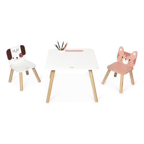 Here's a lovely table with a clean, simple design, created especially for toddlers! Scribbling, drawing, tracing… children love it! From a very young age, they feel the need to express their emotions, to reproduce what they observe, and to do as grown-ups do. For this, nothing is better than a table adapted to their size, designed to accommodate their finest creations and their first big ideas! This wooden table has integrated storage space, ideal for keeping everything within easy reach: crayons, markers, or other small accessories. This table is easily portable and can be set up in the bedroom, playroom, or living room. It is suitable for children from 18 months old. Having a real creative corner is both practical and inspiring for children: they can sit there freely, invent, start again, and develop their imagination day after day. This table is made of FSC™ certified wood. Chair not included.