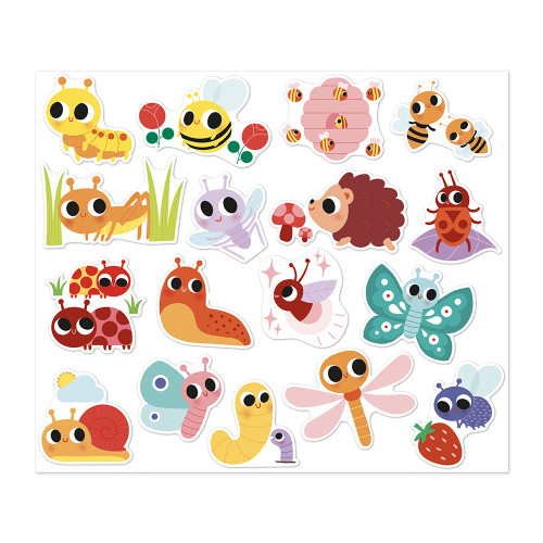Discover a whole miniature world with these large stickers! This pack of 100 stickers featuring little creatures is ideal for babies and children from 18 months. With so many large stickers, fun is guaranteed… and for a long time! To delight sticker lovers, open this pretty flower-shaped pack and discover 6 sheets filled with adorable creatures: ladybugs, butterflies, bees, caterpillars, dragonflies, and many other funny insects! They're all having a blast in this sticker pack! The size of the stickers has been specially designed to fit little hands: each sheet measures 20 x 17 cm and contains 16 stickers. There are even gold foil effects on 2 sheets. This sticker pack is perfect for keeping little ones occupied on long journeys or for adding to early drawings. By manipulating the stickers, baby develops their fine motor skills and even their creativity! The soft colors and adorable designs will pique his curiosity, entertaining him, one sticker after another!