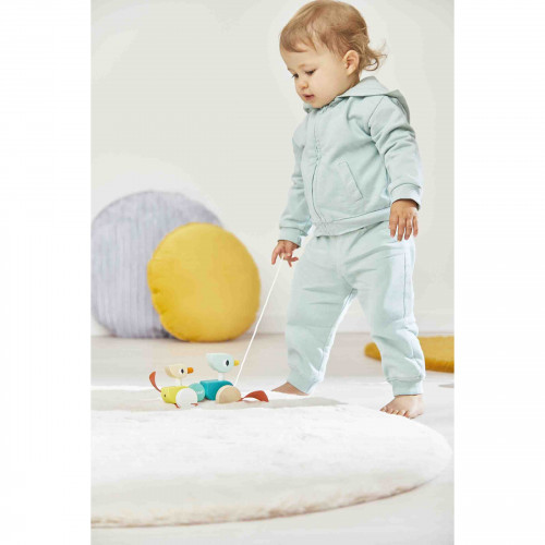 With its mottled coat and pink muzzle, you'll love this little cow to take your baby for a walk! Ideal for baby's first steps and big adventures, it's suitable for little ones from 12 months of age. With this pull-along toy, baby can enjoy the company of friends and develop his imagination. It's the perfect early-learning toy for gently stimulating motor skills, inviting the whole family on a country outing to the farm. With its pretty bell on the front, this little wooden cow tinkles happily as it rolls along. A little cow is usually peaceful and gentle, but also strong and stubborn... Something in common with your toddler, perhaps? In any case, one thing's for sure: we love her laughing eyes and her beautiful wooden wheels! From the barn to the green pastures, this walking toy is just waiting for baby to go out. Made from FSC™-certified wood from sustainably managed forests, this toddler toy features a 50 cm-long string. Come on, we know you'll love it!