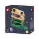 A crunchy busy-board for baby's bedroom! Ideal for entertaining and stimulating little ones from 18 months, this teddy bear-shaped activity board offers a multitude of games to manipulate. In all, over 20 early-learning games are spread across this activity board, to encourage the development of children's motor skills and dexterity. On the program: 2 rotating eyes, 2 soft felt cheekbones, 1 zippered pouch hiding a little rabbit, 1 shoelace to tie, 1 rotating hourglass, 1 wheel showing numbers 0-9 to learn to count, 1 maze to explore, 1 rotating sound snout, 2 straps with different fastening systems (metal or Velcro), 1 castanet, 1 bell, 1 metal lock, 1 hidden mirror, 1 colored abacus, hidden silicone textures, gears, rubber bands to fasten ... As you can see, there's plenty to discover for curious little ones! A wealth of tactile and sonic pleasures to develop baby's fine motor skills. And the various, accessible openings are perfect for practising dressing or tying shoelaces. It's a versatile, complete early-learning toy, perfect for independent play. You can easily fix the wooden busyboard to the wall. Its poetic style and beautiful colors make it a perfect addition to any child's bedroom. Baby will find all the cutest animals: the bee, the rabbit ... and the polar bear, of course! Dimensions: 47.5 x 60 cm. From our Pure collection of wooden early-learning toys, this teddy bear busy-board is made from FSC™-certified wood. So many discoveries in store!