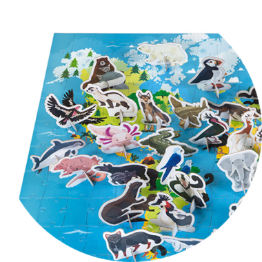 Watch your giant puzzle come to life as you assemble and arrange the animals!