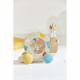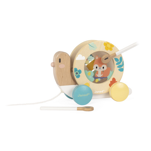 Sammy snail is never worried! This fun wooden snail to walk around with its pretty spring colours will amuse toddlers from 1 year old. The shell turns when you walk it and can be removed to reveal a tambourine and a little xylophone! The snail's antennae are also removable and become sticks to tap on the xylophone and tambourine. This cute little toy will become your baby's favourite companion, introducing him/her to music in a playful way and encouraging him/her to move around. Thanks to its small size, your child will be able to take it everywhere, on holiday or to Uncle and Auntie's. This toy is painted with water-based paint, so your child can put it in his/her mouth in complete safety.
