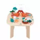 ¡Es hora de viajar a la época de los dinosaurios que tanto les gusta a los más pequeños! Esta magnífica mesa de actividades de madera de tonos rojizos y azules lo tiene todo para transportar a los niños a partir de 12 meses a un universo extraordinario: ¡un volcán en plena erupción, bebés dinosaurios saliendo del cascarón e incluso un ejemplar volador! Esta inmersión en pleno corazón del Jurásico incluye una agenda de 8 variadas actividades para desarrollar la curiosidad, motricidad y concentración del bebé: un tricerátops que se desplaza por un circuito para que pase bajo el volcán y haga sonar la campanilla, un ábaco con 10 cuentas de madera y un pteranodón en pleno vuelo, un apilable de 3 piezas con forma de palmera o unas piezas de madera de pisadas y huellas para encajar. En este completo juego de actividades también hay una bonita experiencia visual con el huevo giratorio que sirve para poner en movimiento otros huevos del tablero, unas ruedas con engranajes, un huevo que hace ruido al girarlo y un espejo rotatorio deformante para hacer reír a los niños. Todos los detalles de este precioso juguete de estímulo de madera son fantásticos: ¡las distintas zonas de juego materializadas con bonitos colores, el humo del volcán de fieltro supersuave o los adorables dinosaurios de grandes ojos redondos que dan ganas de adoptarlos! Este juguete está hecho de madera FSC®. La altura del tablero es de 32 cm y tiene 4 patas muy estables.