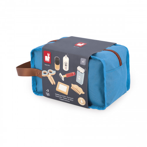¡Su propio maletín de afeitado! A los niños les encanta imitar a los mayores mientras se preparan con su neceser de afeitado para ponerse guapos. Este kit contiene toda una serie de accesorios con mucho estilo que imitan a la perfección a los del barbero o peluquero: una brocha de afeitar y su espuma para el rostro, una navaja de afeitar, un peine para la barba o el pelo, unas tijeras superdivertidas, un espejo para mirarse y un perfume para darse el toque final. ¡Un completo juguete de imitación para peluqueros en ciernes! Todos los accesorios se guardan en una práctica bolsa para llevárselos a todas partes. Con este kit de madera, el niño a partir de 3 años podrá familiarizarse con la idea de «cuidarse a sí mismo» de una forma divertida y utilizando sus propios accesorios. ¿Un corte? ¿Algún retoque? ¡Siéntate y deja que el minibarbero se ocupe de todo!