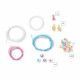 ¡Las joyas con mensajes están de moda! Este estuche creativo para niños a partir de 6 años sirve para hacer sus propias joyas de una manera sencilla. Gracias a los 300 abalorios heishi (cuentas planas finas) de colores y a los abalorios de letras y otros accesorios, se pueden hacer dos pulseras, un broche y un collar. Se pueden componer las palabras «Summer», «Love», «Star» y «Happy». El precioso estuche sirve de joyero para guardar sus creaciones. Este kit contiene 3 hilos de colores, 1 hilo de nailon, 1 broche, 2 colgantes (concha y estrella), 19 abalorios de letras, 280 abalorios heishi de distintos colores, 5 abalorios dorados, 2 anillos (pequeño y mediano), 2 cierres y 1 folleto explicativo.