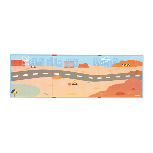 ¡La hormigonera por aquí! Marie, ¿tienes el martillo neumático? Este juego magnético con forma de obra de construcción será el punto de partida para las mejores historias de los niños a partir de 3 años. Darán rienda suelta a la imaginación y trabajarán la motricidad fina al mover los imanes por la imagen. En efecto, este juego magnético consta de un decorado magnético ilustrado y 30 piezas magnéticas. El práctico formato de este juego sobre el tema de la construcción permite transportarlo fácilmente para que la imaginación del niño no tenga cortapisas. Tanto en casa como fuera, el niño podrá soñar con ser un auténtico jefe de obra. Así que podrá coger los planos y supervisar el trabajo como si fuera un arquitecto o incluso subirse al camión hormigonera o a la retroexcavadora. Una vez colocados los imanes en el decorado, el niño podrá poner la escena en vertical para contarte sus historias. Este juego magnético sobre las obras de construcción forma parte de la gran colección de Magnéti'stories, auténticas invitaciones a la imaginación. Juego magnético fabricado con cartón con certificado FSC™ y materiales homologados.
