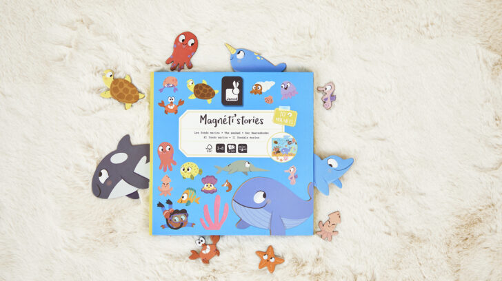 ¿Nos damos un chapuzón? Sus hijos podrán sumergirse en las profundidades del mar a partir de los 3 años con este juego magnético ilustrado con peces y mariscos. Este juego magnético se compone de un juego magnético y 30 imanes. Al agarrar las piezas imantadas, su hijo desarrollará su motricidad fina, que es fundamental para su aprendizaje precoz. Y la imaginación de su hijo tampoco quedará al margen, ya que cada imán, una vez sumergido en la decoración, le invita a crear sus propias historias. Los peces de colores están de fiesta, las estrellas de mar se lanzan miradas divertidas, los buceadores se sorprenden ante tanta animación y diversidad... Un sinfín de divertidos escenarios cobrarán vida en la cabeza de tu pequeño. Además, se puede montar en vertical para que tu hijo te cuente sus historias. Además, el juego se puede plegar para transportarlo fácilmente, por lo que no hay barreras (aparte de la Gran Barrera de Coral) que se interpongan en el camino de la imaginación de su hijo. Esta pizarra magnética forma parte de la colección Magnéti'stories, una auténtica invitación a la imaginación y a soñar despierto. Este juego magnético está fabricado con cartón certificado FSC™ y materiales controlados.