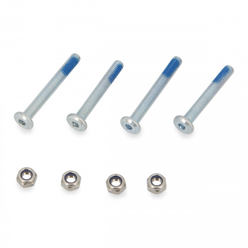 Juego de tornillos que incluye: 4 tuercas NYLSTOP, 2 tornillos L 52 mm y 2 tornillos L 47 mm con fijador de rosca. Utilizable en lotes del 10609 al 11125. A partir del lote 11382, estos tornillos se utilizan automáticamente. Para J04408 - ABC Buggy Sweet Cocoon .