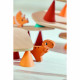 ¿Conoces el famoso juego Piks? Un producto estrella de OPPI, este juego de equilibrio consiste en apilar tablas de madera sobre conos de silicona... ¡sin que se caigan! Es una actividad divertida que desarrolla la atención y la concentración del niño, así como su motricidad fina y su capacidad para comprender y organizar el espacio. Janod se ha asociado con OPPI para crear su propio juego Piks, ambientado en un mundo jurásico. Este juego de destreza de madera enseña a niños a partir de 3 años a colocar las piezas de forma lógica y precisa para mantener el equilibrio. Consta de 21 conos de 3 tamaños y colores diferentes, además de 7 tablas de madera. ¿Y qué mejor manera de poner a prueba el equilibrio que con dinosaurios? Los niños pueden divertirse colocando 6 dinosaurios en las plataformas: Triceratops, Stegosaurus, Pterodáctilo, Tyrannosaurus, Brachiosaurus y Ankylosaurus. Su presencia añade un toque de aventura a este juego de equilibrio: el niño no solo coloca piezas, ¡sino que también pone a sus criaturas favoritas en un desafío de suspense! ¡Es ideal para estimular la imaginación! Entonces, ¿estás listo para asumir el desafío?