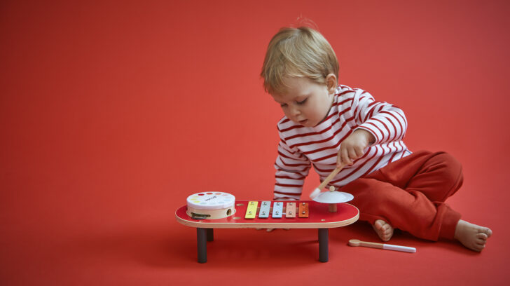 ¡El bebé sube al escenario! ¡Que empiece el espectáculo! Esta mesa musical de madera es ideal para niños a partir de 18 meses que quieran descubrir sonidos mientras se divierten. Con su colorido diseño y actividades integradas, invita a los pequeños a tocar, rascar, escuchar y crear sus primeras melodías. Incluye: 1 xilófono, 1 tambor, 1 platillo y 2 baquetas de tamaño perfecto para sus pequeñas manos. ¡Las baquetas se pueden guardar cómodamente en los agujeros de la mesa! Este juguete de rol es perfecto para desarrollar la sensibilidad musical, la coordinación y la creatividad. ¡Esta mesa es un auténtico patio de recreo sónico! Con sus formas suaves y atractivos colores, esta mesa musical estimula la curiosidad y anima a jugar. Este juguete de madera forma parte de la gama Confetti , ¡una línea completa de juguetes de instrumentos musicales con diseños Pop N' Rock! Llenos de color y alegría, los juguetes musicales Confetti permiten a los pequeños músicos descubrir el placer de la improvisación musical. Este juguete está hecho de madera con certificación FSC™. ¡A por sus varitas, pequeños artistas!