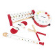 ¡Todo lo que necesita el pequeño músico perfecto! Este set musical de madera consta de cuatro instrumentos musicales de juguete para niños a partir de 2 años. Permite a los niños probar varios instrumentos y encontrar su favorito o crear su propio grupo de música con sus hermanos y amigos. ¡Tus hijos podrán divertirse tocando la flauta, agitando la pandereta, tocando el xilófono o incluso tocando las castañuelas! Descubrirán los distintos sonidos, estimularán sus sentidos y darán sus primeros pasos en la improvisación musical: los más pequeños adorarán estos bonitos juguetes. ¡Confetti es una completa gama de instrumentos musicales de juguete llenos de color y alegría con dibujos Pop N'Rock!