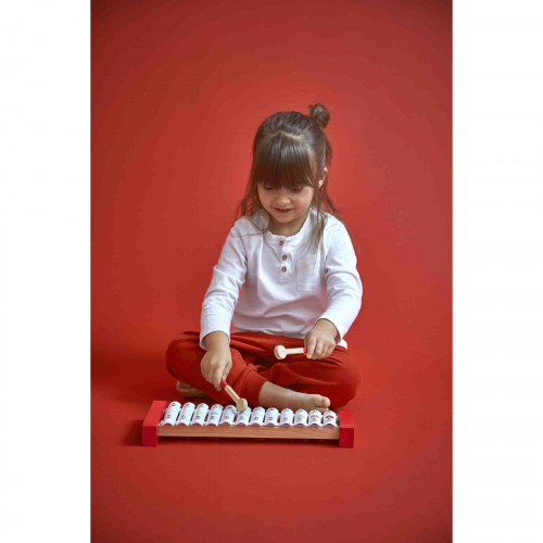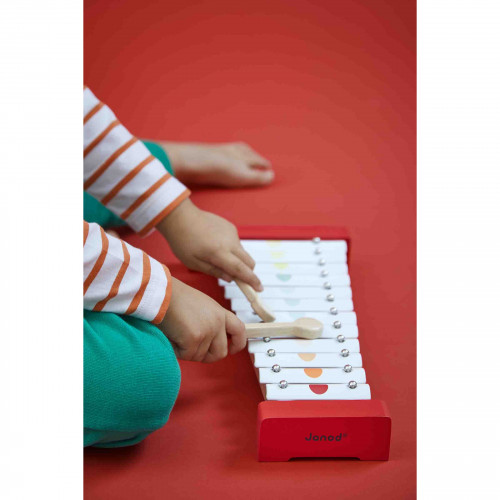 Xilófono de 12 notas, con 2 baquetas. ¡Roja, amarilla, verde, naranja... ! ¡"Confeti" es una gama completa de instrumentos musicales decorados al estilo Pop N’ Rock! "Confeti" ayuda a activar todos los sentidos y permite a los pequeños aprendices de músico a hacer sus pinitos en el mundo de la improvisación musical.