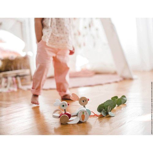 ¡Ahí va un lémur de camino a la fiesta! ¡Este divertidísimo juguete de arrastre hará reír al bebé a carcajadas! Apto para niños de a partir de 18 meses, este lémur de arrastre hace su debut en la música: ¡sus brazos se mueven cuando rueda y toca el xilófono mientras se pasea! Un juguete de estímulo sonoro y musical, ideal para niños de a partir de 1 año y medio. Con la cabeza sobre un resorte y sus orejas de fieltro, ¡este pequeño lémur de madera dejará al bebé encandilado! Es un juguete de arrastre perfecto para seguir a los más pequeños mientras aprenden a caminar y acompañarlos en sus primeros pasos. Las ruedas de este juguete de madera de estímulo son silenciosas, con lo que se podrá apreciar bien la dulce melodía que tocará el lémur. Decorado con pintura al agua, este juguete está hecho de madera de bosques gestionados de forma sostenible, con certificado FSC®.