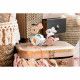 Con este juguete de estímulo 2 en 1, el bebé empieza a andar y descubre los bloques a partir de 18 meses. Ideal para acompañar al pequeño en sus primeras escapadas, este juguete de paseo de madera con forma de caracol está lleno de sorpresas: el caparazón del caracol gira cuando rueda, ¡qué divertido! ¡El bebé agarra la cuerda y listo! ¡En marcha! La otra característica especial de este juguete de primera infancia son los 16 cubos de madera que incluye. ¡De diferentes formas y colores, serán el primer juego de construcción del niño! Jugar con bloques es fundamental a partir de 1 año y ayuda al bebé a desarrollar la motricidad, la imaginación y la lógica. Este juguete de arrastre tiene además un bonito ábaco con 5 cuentas de madera en la parte delantera: ¡una actividad más para el pequeño! El ingenioso revestimiento de goma de las ruedas las hace silenciosas. Este carrito de bloques es un completo juguete de estímulo, ideal tanto para los primeros pasos del bebé como para que se divierta. ¡Porque cada paseo puede ir acompañado por una pausa para jugar! Este carro de bloques, perteneciente a nuestra colección Sweet Cocoon, está hecho de madera con certificado FSC™.
