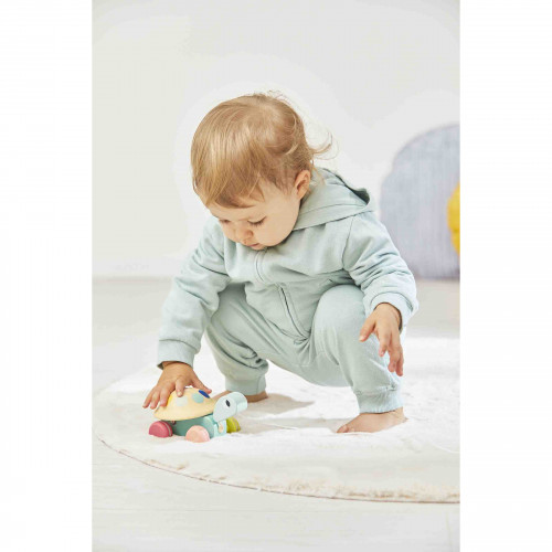 Un magnífico juguete de aprendizaje que ayudará a su hijo a desarrollar sus capacidades motrices. Cuando su hijo pasee a su tortuga, las ruedas harán que el caparazón cambie mostrando los bonitos colores del arco iris. Pintura al agua.
