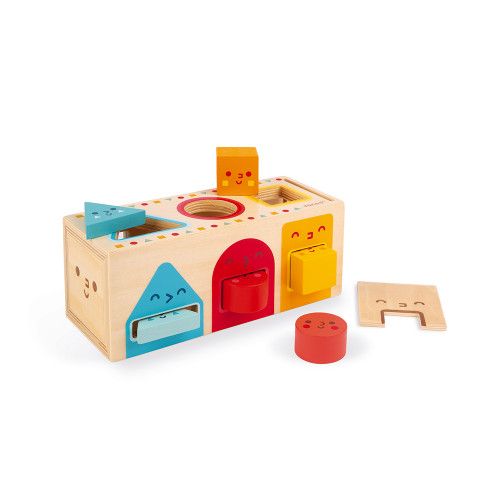 Esta bonita e ingeniosa caja es ideal para empezar a aprender los colores y las formas geométricas (triángulo, círculo, cuadrado), las cuales deberá introducir su hijo en la caja a través del hueco correcto. También permite aprender la noción del grosor gracias a sus 3 lados en los que su hijo deberá introducir las piezas a través de los diferentes ángulos. La caja contiene 6 piezas de colores (2 triángulos, 2 círculos y 2 cuadrados) que se guardan en la caja. Una pequeña tapa corredera permite abrir la caja para recuperar las piezas fácilmente.