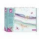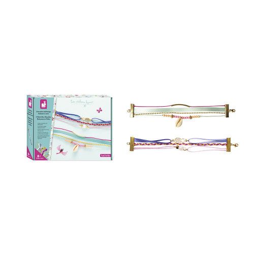 Ornez vos poignets de vos plus beaux bracelets ! Avec ce kit créatif, les enfants dès 8 ans réalisent 30 bracelets enroulés aux couleurs de l'arc-en-ciel. Fabriquer ses propres bijoux n'a jamais été aussi facile, d'autant plus qu'un livret avec modèles et instructions est inclus pour guider les petits créatifs ! Avec leur kit de fabrication de bracelets, les enfants développent leur sens de la créativité et leur dextérité, ils expriment aussi leur personnalité en assemblant soigneusement les fils colorés et en choisissant la breloque la mieux assortie. Le coffret créatif contient : 12 échevettes de fil de coton de 17 mètres, 6 breloques (soleil, arc-en-ciel, nuage, parapluie, étoile filante, éclair), 2 pompons, 10 anneaux de raccord et 1 pince. Une fois réalisés, les bracelets sont prêts à être portés avec fierté ou offerts tels des bracelets de l'amitié : avec 30 bracelets au total, il y a de quoi satisfaire tous les amoureux des bijoux ! L'autre atout de ce loisir créatif, c'est sa boîte réutilisable comme boîte à bijoux, ce qui permet de bien ranger tous les bracelets confectionnés et même ceux en cours de réalisation. Il faut compter environ 15 minutes pour réaliser chaque bracelet : soit 7h30 min environ pour créer tous les bijoux proposés dans le coffret. Voilà une activité créative et récréative qui fera toujours plaisir comme cadeau d'anniversaire !