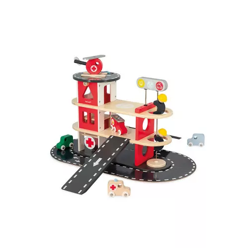 Au feu les pompiers ! L'alarme retentit, il est grand temps de sauter dans son plus beau camion et de filer sans peur vers l'incendie à éteindre ! Pour des heures de jeu et d'histoire de pompiers, rien de mieux qu'une belle caserne en bois de 2 étages, bien équipée et au look tout en rondeurs ! Vous retrouverez dans ce magnifique jouet de la gamme Bolid, tout le nécessaire pour satisfaire les petits fans des soldats du feu ! A partir de 2 ans, les enfants pourront s'imaginer les plus belles aventures en faisant vivre les véhicules inclus : 2 voitures, 1 ambulance, 1 camion de pompiers et 1 hélicoptère pour pouvoir jouer jusque dans les airs ! Un ascenseur mécanique permet de faire monter les voitures jusqu'au dernier étage ! On retrouve 2 personnages pompiers sur la rampe (non amovibles), ils se déplacent sur celle-ci et sont toujours prêt à partir à l'action ! On adore les couleurs en harmonie de ce beau jouet qui développe l'imagination et fait travailler la motricité des plus petits. Sur certains éléments, on voit apparaitre la couleur du bois, pour encore plus d'authenticité. Dimension de la caserne de pompiers : 42 x 68,5 x 32 cm. Ce produit est composé de matériaux certifiés FSC® et de matériaux contrôlés.