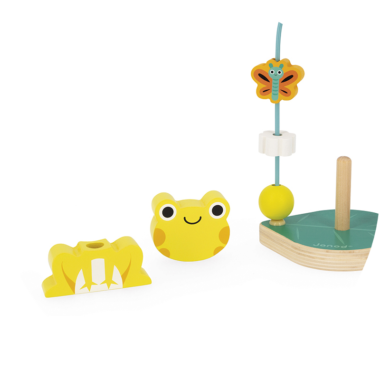 C'est la grenouille la plus mignonne de la forêt tropicale ! Bébé va s'amuser pendant des heures en manipulant ce looping en bois coloré. Jouet d'éveil 2 en 1, ce looping est aussi un joli empilable : la grenouille est en 2 parties à assembler encore et encore ! Les enfants dès 12 mois vont s'amuser à faire coulisser les éléments sur le parcours : papillons, perles et fleurs ... 7 éléments en tout. Ce jouet premier âge est idéal pour les enfants dès 1 an, ils pourront développer leur motricité fine et se familiariser avec les couleurs tout en s'amusant ! Ce jouet d'éveil en bois est peint à l'eau, il est en bois issu de forêts gérées durablement, certifiées FSC®.