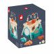 Quelle jolie boite à formes en bois sur le thème des dinosaures ! On adore les couleurs et les détails de ce cube de jeux facilement transportable. Ce jouet multi-activités dinosaures propose de nombreux jeux qui vont plaire aux enfants dès 12 mois. Sur la face de devant on retrouve une boite à formes avec des dinosaures en bois à faire passer dans le bon emplacement. Il faudra un peu de réflexion aux tout-petits pour savoir où placer le tyrannosaure, le tricératops et le ptéranodon trop mignons ! Les dinosaures ne feront pas de bruit en tombant grâce à la feutrine installée au fond de la boite. On plonge la main sur le côté pour récupérer l'ensemble des pièces en bois. Sur la face de derrière, on retrouve 3 engrenages à tourner permettant aux plus petits de faire leurs premières expériences sur la rotation et la vitesse tout en développant leur dextérité. Sur le côté gauche, bébé s'amusera avec son reflet dans un miroir et sur le haut du volcan, il profitera de 2 autres jeux dino : un labyrinthe et un boulier avec ses 8 perles en bois. Ce beau jouet d'éveil est fabriqué en bois FSC®.