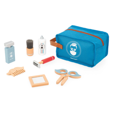 Leur propre mallette de rasage ! Les enfants adorent imiter les plus grands qui se préparent avec leur kit de rasage, pour être tout beau ! Ce set contient toute une panoplie d'accessoires stylés et imitant à la perfection ceux du coiffeur/barbier : un blaireau et sa mousse à raser pour le visage, un rasoir, un peigne pour la barbe ou les cheveux, des ciseaux trop rigolos, un miroir pour s'admirer et un parfum pour la touche finale ! Voilà un jouet d'imitation complet pour nos apprentis coiffeurs ! Tous les accessoires se rangent dans une sacoche très pratique pour les emporter partout. Avec ce set en bois, votre enfant à partir de 3 ans va pouvoir se familiariser avec la notion du "prendre soin de soi" de manière ludique et en utilisant ses propres accessoires. Une petite coupe ? Un rafraîchissement ? Installez-vous et laissez-vous bichonner par votre petit barbier !