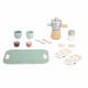 Serait-ce la cuisine de leurs rêves ? Idéale pour jouer à la dinette, cette cuisine en bois a été pensée pour les enfants à partir de 3 ans. Avec elle, c'est tout un monde de partage, d'histoires, et de bons petits plats qui s'offre à eux ! Pour cela, 6 accessoires sont inclus : 1 écumoire, 1 casserole et 1 passoire en métal, et 3 boîtes d'aliments en carton (fromage, farine, riz). De quoi jouer à la dinette sans attendre ! Le gros atout de cette cuisine pour enfant, c'est sa plaque de cuisson imitation induction qui fait de la lumière et du bruit, pour encore mieux imiter les vraies. En effet, les feux s'allument grâce à un éclairage à LED et la plaque diffuse le son de l'eau qui bout. Le son s'éteint automatiquement après 30 secondes, et peut être contrôlé grâce aux boutons rouges. Voilà une cuisine sonore et lumineuse qui immerge les enfants dans un monde imaginaire où ils sont aux commandes ! Mais ce n'est pas tout, nos apprentis cuistots profitent également d'un four pour une cuisson optimale de leurs gratins eu autres gâteaux, avec ses deux boutons rotatifs et bruitage. Juste à côté, c'est un grand placard qui accueillera volontiers tous les ingrédients nécessaires à leurs folles préparations. Un évier en inox est également inclus au plan de travail, ainsi qu'une patère bien pratique pour avoir ses ustensiles toujours à portée de main ! Il y a même une horloge avec des aiguilles à faire tourner, pour garder un œil attentif au temps de préparation de ses recettes. Enfin, la partie haute de la cuisine jouet propose une petite étagère ainsi qu'un micro-ondes avec bouton rotatif, pour une cuisson express ! Toute la famille est invitée à se rassembler autour de cette cuisinière, bien nommée "Mozaïc", avec son look sobre et ses mosaïques de couleurs qui réhaussent le tout. Jouet d'imitation par excellence, la cuisine des enfants invite à l'imagination, à la convivialité, et sera le centre de toutes leurs histoires dans leur monde d'enfant tant inspiré de celui des grands. Le plan de travail se situe à 50 cm de haut. Alors, plutôt gratin de courgettes ou cake au chocolat ?