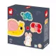 Dès 18 mois, les enfants peuvent commencer à s'initier aux joies des puzzles ! Ils sont parfaits pour développer la motricité fine et la coordination ! Avec ce lot de 4 puzzles évolutifs premier âge, les petits fans de de la nature et des habitants de nos jardins vont être comblés ! Ce set de puzzles en bois, présenté dans une jolie boite cadeau contient 4 puzzles allant de 2 à 5 pièces pour que les enfants puissent s'amuser et progresser à leur rythme. On retrouve les animaux favoris des tout-petits : un escargot de 2 pièces, une tortue de 3 pièces, un lapin de 4 pièces et un papillon de 5 pièces. Les pièces à replacer dans le bon ordre sur un support en bois sont suffisamment grosses pour que bébé puisse bien les prendre en main. L'assemblage de ce jeu d'éveil sera un vrai plaisir ! Avec ce jouet, vous pourrez également initier l’apprentissage des premiers chiffres. Puzzles en bois FSC®.
