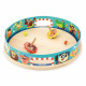 La foule est en délire quand les toupies entrent dans l'arène ! Dès ses 4 ans, votre enfant sera peut-être le maître de l’arène, contrôlant habilement sa toupie pour accomplir une mission : mettre la bille dans la cage adverse. Ce jeu de toupies en bois comprend 1 arène, 2 toupies avec lanceurs, et 2 billes de verre. Chaque toupie, équipée de silicone pour un rebond optimal, est un adversaire courageux qui tourbillonne à travers l’arène, visant les cages avec précision. Les billes de verre sont les trophées convoités que chaque toupie s’efforce de capturer. L’arène ainsi que sa foule en délire, est le stade où ces toupies s’affrontent. C’est un lieu de défis, de triomphes et parfois de défaites, mais toujours de plaisir et d’excitation. Ce jeu offre à votre enfant la chance de développer des compétences importantes comme l’adresse et la coordination main-œil, tout en s’amusant énormément. Que ce soit pour une fête, une réunion de famille ou simplement pour passer un après-midi amusant à la maison, ce jeu de toupie est le choix parfait. Préparez-vous, car dans l’arène des toupies, chaque partie a son lot de rebondissements ! Cette arène et toupies en bois s’inscrivent dans la collection fun et décalée qu’est la gamme APPLEPOP. Ce jeu de toupies est fabriqué dans un bois certifié FSC™.