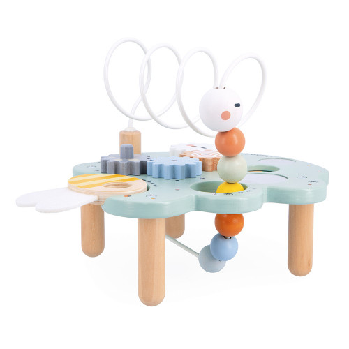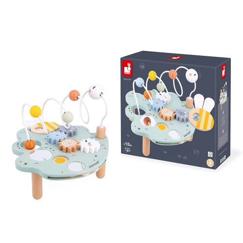 Une feuille d’activités à croquer, ou presque … Ce jouet d’éveil propose une multitude d’activités amusantes pour bébé, dès 18 mois. Au programme : motricité, observation et éveil des sens ! 5 activités sont incluses au total : 4 engrenages à faire tourner à l’infini, 2 miroirs pour s’observer, 1 roue des couleurs sous forme de molette, 1 loupe en forme d’abeille pour prendre le temps de découvrir tous les petits insectes qui décorent la feuille, et 1 looping géant en forme de chenille à faire coulisser. Avec son jouet premier âge, votre bébé apprend à être curieux en manipulant les éléments pour découvrir les surprises qu’ils renferment ! Tous les éléments de ce jouet d’activité sont facilement manipulables par les petites mains potelées, et ont été pensé pour stimuler la vue et la motricité fine des petits. Ils pourront aussi commencer à apprendre les couleurs, les formes et même de nouveaux mots en observant les petites bêtes du jardin représentées sur la feuille. Facile à poser au niveau de bébé, ce jeu de manipulation promet de longs moments d’apprentissage et de découverte. Il invite votre enfant dans l’univers du jardin, lieu propice à l’exploration dès son plus jeune âge. Ce jouet d’éveil en bois fait partie de notre collection Sweet Cocoon. Durable, il est composé de bois certifié FSC™.