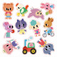 Des autocollants pensés pour les tout-petits ! Les stickers repositionnables sont à l'honneur dans ce kit créatif pour les enfants à partir de 18 mois. Coller et décoller à l'infini, c'est idéal quand les petits développent leur motricité fine et commencent à appréhender les activités créatives pour la première fois ! L'atout de ce coffret créatif, ce sont les autocollants épais et spécialement conçus pour les petites mains : ils sont faciles à manipuler pour être aisément décollés. Leur aspect repositionnable permet de prolonger l'activité, mais aussi d'imaginer des histoires sans craindre de se tromper et de coller le sticker de manière définitive sur une surface. En parlant de décor, 2 sont proposés sur le support double-face inclus dans le kit : la ferme et ses prairies verdoyantes sur une face, la forêt et ses multitudes de cachettes sur l'autre face. Cette activité manuelle est idéale pour les enfants en maternelle. Les autocollants représentent des animaux très mignons, des véhicules, et chaque personnage est occupé à une activité bien précise que votre enfant s'amusera à décrire ! Le plus de ces autocollants, et non des moindres pour les parents, c'est que l'on peut facilement les retirer s'ils sont collés par erreur au mauvais endroit ... Oups ! Ils possèdent aussi une base transparente pour mieux se fondre dans le décor. Ce loisir créatif contient : 1 décor recto-verso et 2 planches de stickers épais repositionnables (22 en tout). Si votre tout-petit souhaite compléter entièrement un décor d'autocollants, il faudra compter environ 10 minutes.