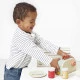 En ce début de journée, il flotte une bonne odeur de pain grillé dans la maison de Mamie Soleil. Ce set d’imitation convient aux enfants à partir de 3 ans et se compose d’un grille-pain et de 10 accessoires : pour un petit-déjeuner gourmand ! Parfait pour compléter sa cuisine et jouer à la dinette, ce set en bois permet de stimuler l’imagination des enfants, qui adorent imiter les plus grands. Il se compose de : 1 pot de confiture, 1 pot de miel, 1 assiette, 1 couteau, 1 morceau de beurre à découper, 2 tranches de pain, 2 pièces en feutrine (confiture et miel), et bien-sûr, d’un grille-pain ! Placez les tranches de pain dans le toaster, réglez la température et hop, c’est prêt ! Les tartines sautent hors du grille-pain dès qu’on appuie sur le bouton. Servie dans une belle assiette, la tartine se garnit de beurre ou de miel, ou encore de confiture de fraise : miam ! Actionner le grille-pain, couper le beurre ou tartiner permet de stimuler la motricité des petits. Ils imitent les gestes des adultes pour gagner en confiance au quotidien. Qui sait, ils sauront peut-être bientôt faire leurs tartines toastées tout seuls ! Ce grille-pain et ses accessoires sont composés de bois issu de forêts gérées durablement, certifié FSC™. Il fait partie de notre collection Mamie Soleil : un ensemble de jouets d’imitation inspirés de la cuisine de grand-mère, imprégnés d’émotions et de souvenirs d’enfance.