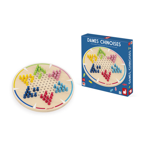 Un saut par ici, un saut par là… et c'est gagné ! Ce jeu de dames chinoises en bois, composé de 60 pions colorés, est idéal pour initier les enfants dès 5 ans aux jeux de stratégie. Avec ses 10 pions colorés, chacun choisit sa couleur et démarre dans une pointe de l’étoile. Le but du jeu ? Traverser le plateau en avançant case par case ou en sautant par-dessus les autres pions pour atteindre le camp opposé ! Mais attention, le nombre de branches dépend du nombre de joueurs ! À 2, chacun contrôle trois branches pour plus de rebondissements. À 3, c’est deux branches par joueur. À 4 ou 5, on joue avec une branche chacun et on bloque celles qui ne servent pas. Et à 6 ? Facile : une branche chacun ! Ce jeu traditionnel de réflexion favorise le développement de la logique et de la concentration. Un jeu malin qui promet plein de parties animées et de bons moments à partager ! Le jeu est fabriqué à partir de bois FSC™.