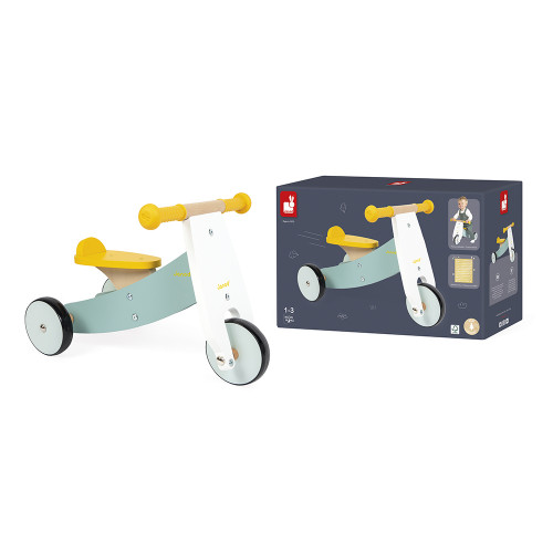 Prêts pour les premières virées ? Ce tricycle en bois est idéal pour les enfants dès 12 mois. Léger, stable et facile à manier, il accompagne les tout-petits dans leurs premières explorations. Un premier bolide qui file à toute allure… dans le salon ! Grâce à son assise basse de 23 cm, les petits pilotes peuvent monter et descendre facilement. C'est parfait pour avancer à son rythme ! Les poignées en silicone permettent une bonne prise en main. Avec ses trois roues bien stables et silencieuses, grâce au revêtement en caoutchouc, ce tricycle accompagne les premiers trajets sans crainte. Et pour encore plus de fun, une planche de stickers est incluse pour personnaliser le tricycle selon ses envies ! Ce porteur à trois roues aide à développer la motricité globale, l’équilibre et la coordination. Ce tricycle est en bois FSC™. Allez, en selle !